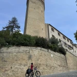Proseguiamo verso est, respirando l’aria marina, per raggiungere la piccola e suggestiva chiesa di Madonna Manù, incastonata tra i campi. Da qui svoltiamo a destra e, pedalando su strade sterrate, arriviamo ad Altidona, con la sua torre medievale e i bastioni che raccontano storie di antiche difese.