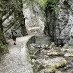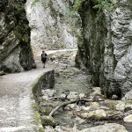 Iniziamo ad addentrarci nelle gole, inerpicandoci tra rocce e vegetazione e scavalcando il torrente su un ponticello di legno. L’inizio non deve spaventare; il sentiero si addolcirà presto restando a fianco delle tumultuose acque che si sono scavate il passaggio tra le rocce strapiombanti.