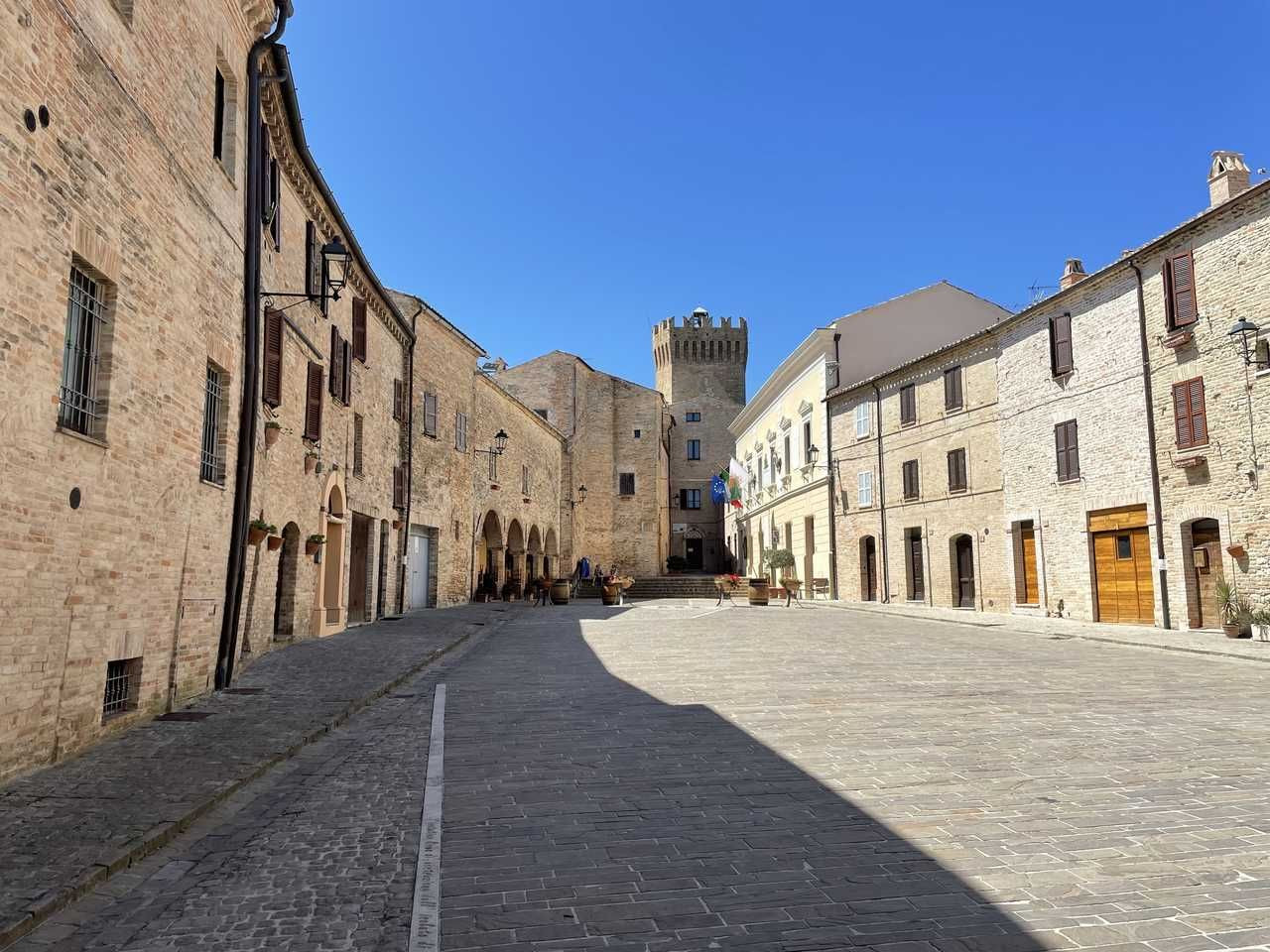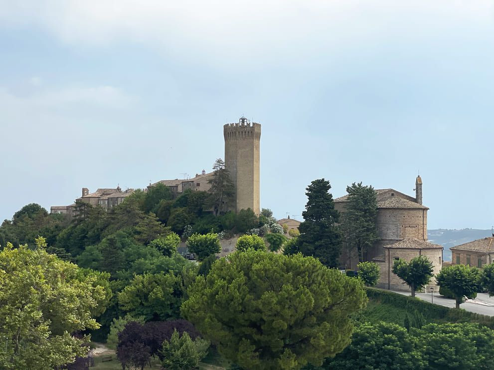 Partiamo dal centro di Monterubbiano, dalla piazza della collegiata di Santa Maria dei Letterati, uscendo dalle mura del paese attraverso Porta San Basso.