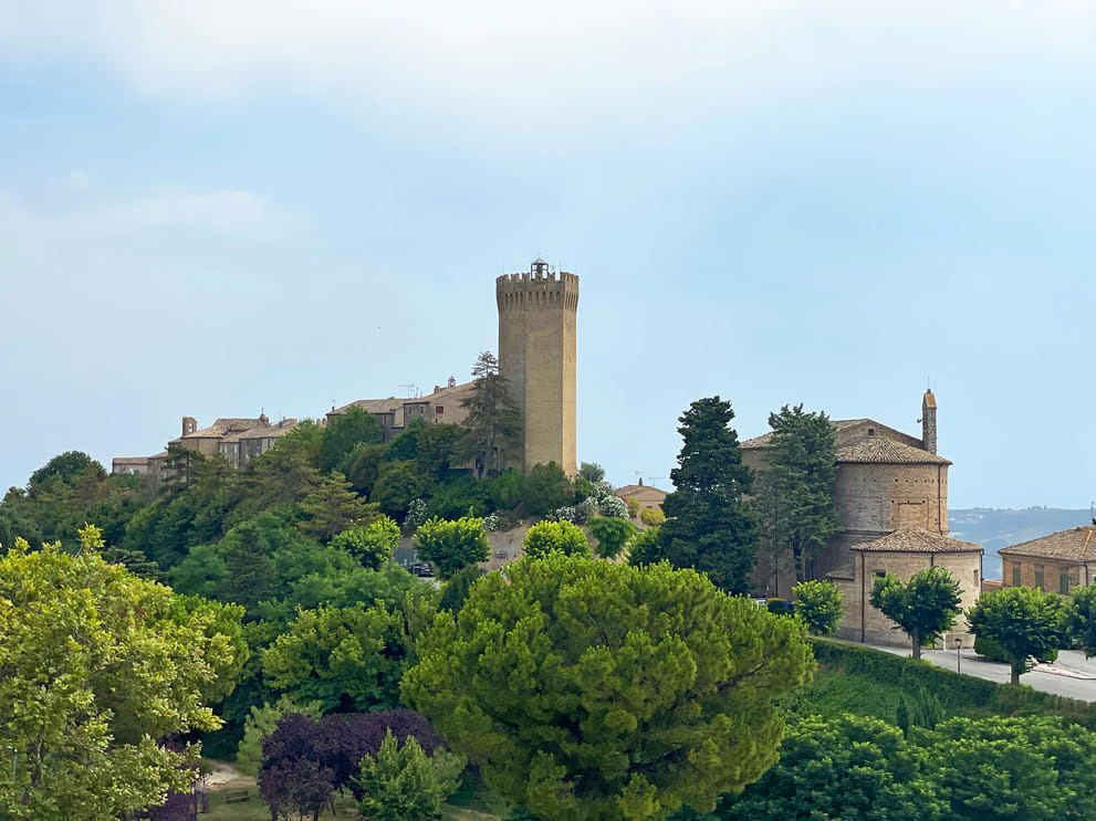 Ritornati sul nostro crinale, proseguiamo verso Moresco, piccolo ma interessante borgo fortificato caratterizzato da una imponente torre eptagonale che si staglia alla nostra sinistra. Poco prima del paese merita una sosta il piccolo e originale tempietto della Madonna della Salute. Dopo la visita al borgo, riprendiamo la strada per entrare nel centro storico della vicina Monterubbiano, paese di più ampio respiro, ricco di chiese e palazzi storici. Interessante il Museo civico archeologico all’interno dell’ex complesso conventuale di San Francesco.