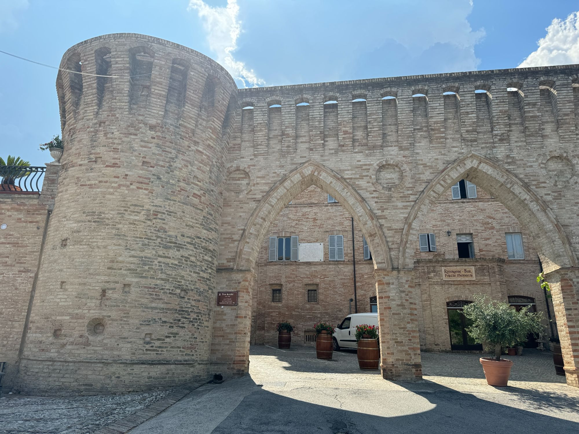 Scendiamo verso il fondovalle, attraversiamo il fiume Aso e iniziamo a risalire la cresta sud, avvicinandoci alla storica rocca di Montevarmine. La vista ci accompagna mentre raggiungiamo Carassai, borgo affascinante con le sue antiche case in mattoni. Da non perdere la visita del nucleo più antico sino alla piazzetta panoramica. Dopo una breve pausa, continuiamo verso Montefiore dell’Aso, borgo ricco di monumenti e con il polo museale di San Francesco che merita certamente la visita. Lasciato il paese scendiamo nuovamente in fondovalle e affrontiamo la salita più lunga della giornata, sei chilometri che ci conducono fino a Moresco, uno dei Borghi più belli d’Italia, con la sua torre merlata e i vicoli suggestivi. Concludiamo il nostro tour tornando nella vicina Monterubbiano, arricchiti di panorami indimenticabili e di un’esperienza unica.