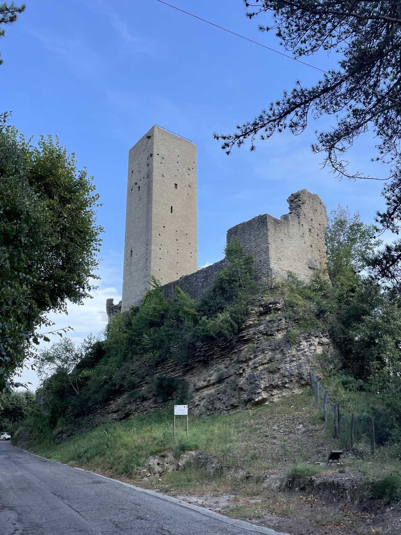 Ripresa la strada proseguiamo verso Montefalcone Appennino, un borgo abbarbicato su una rupe, dominato dalla sua rocca medievale, che ci regala scorci panoramici indimenticabili. Poco oltre il paese, attraversiamo la storica Galleria delle Scalelle, un suggestivo tunnel scavato nel 1827, che ci svela le stratificazioni del terreno. Subito dopo, deviamo a destra e imbocchiamo una stradina minore, affrontando un breve strappo per poi lasciarci cullare dalla discesa verso Smerillo. Qui, lasciamo le bici e, partendo dal parco del belvedere, ci addentriamo a piedi in un sentiero che ci conduce alla “Fessa” di Smerillo, uno stretto canyon formatosi 3,5 milioni di anni fa; uno spaccato della storia geologica terrestre.